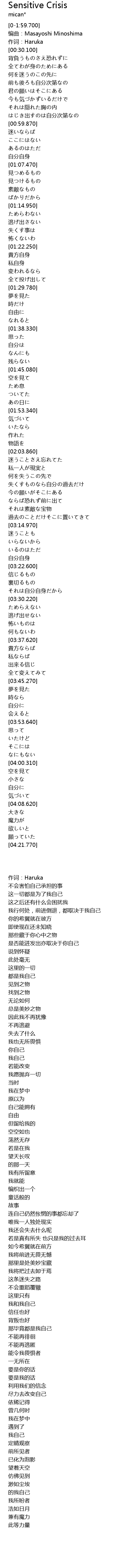| [00:15.010] | 作词:Haruka |