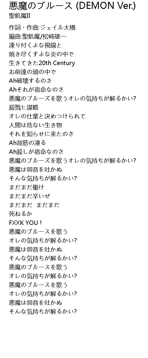 | [00:17.508] | 編曲:聖飢魔/松崎雄一 |