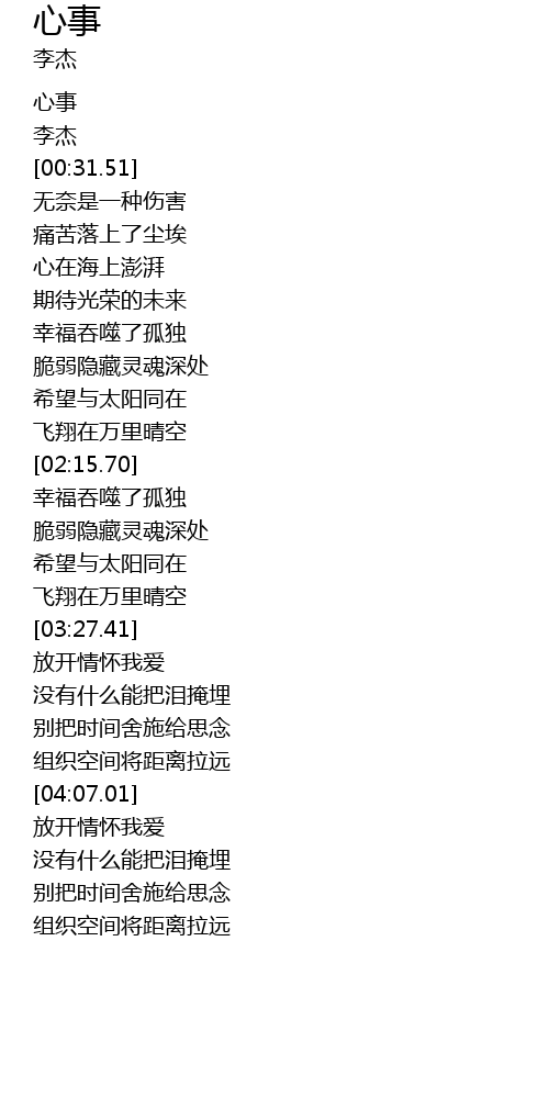 | [04:32.39] | 没有什么能把泪掩埋 |