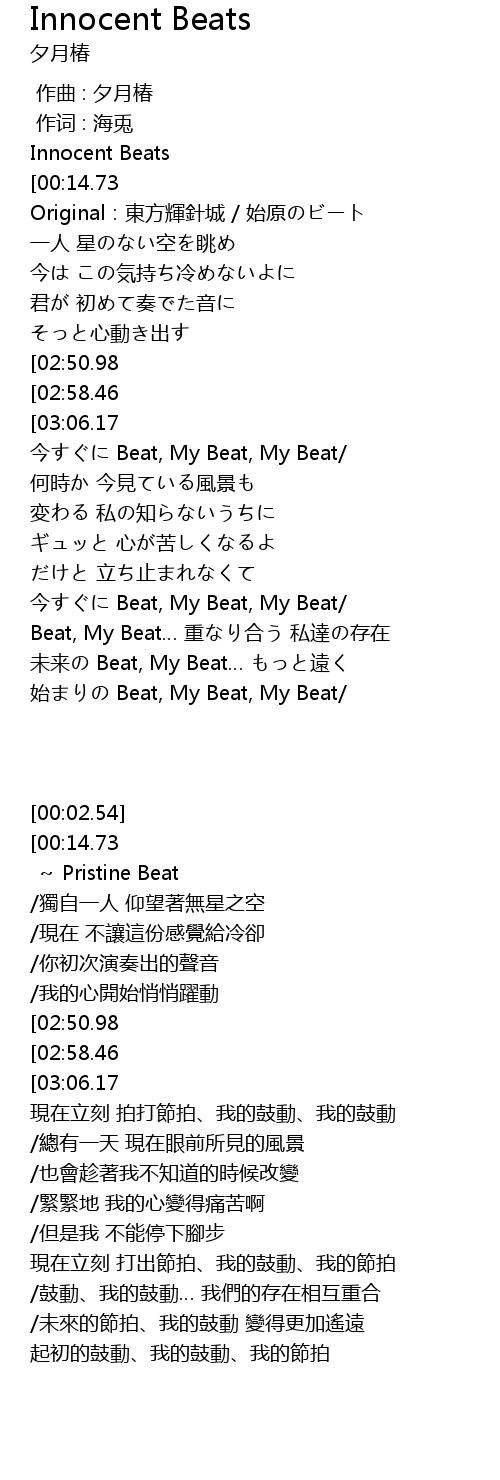 | [00:02.54] | Innocent Beats |