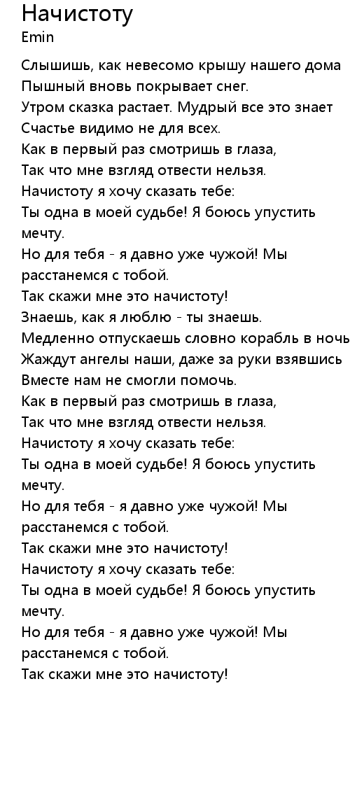 Начистоту  Lyrics