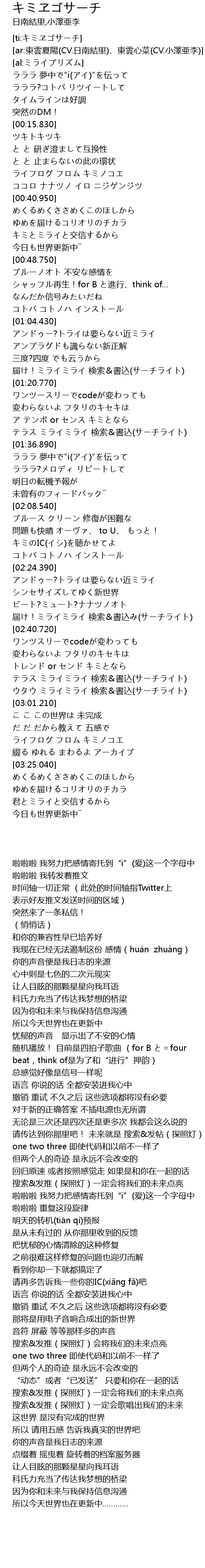 | [00:45.110] | キミとミライと交信するから |