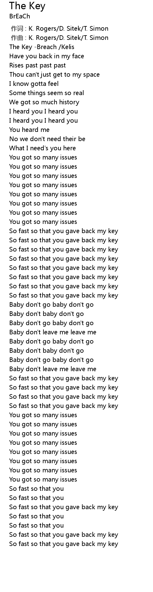 | [00:00.00] | The Key -Breach /Kelis |