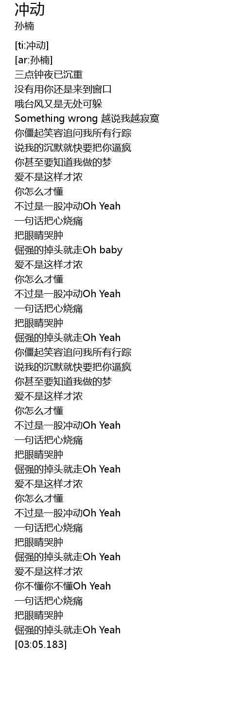 | [00:59.115] | 不过是一股冲动Oh Yeah |