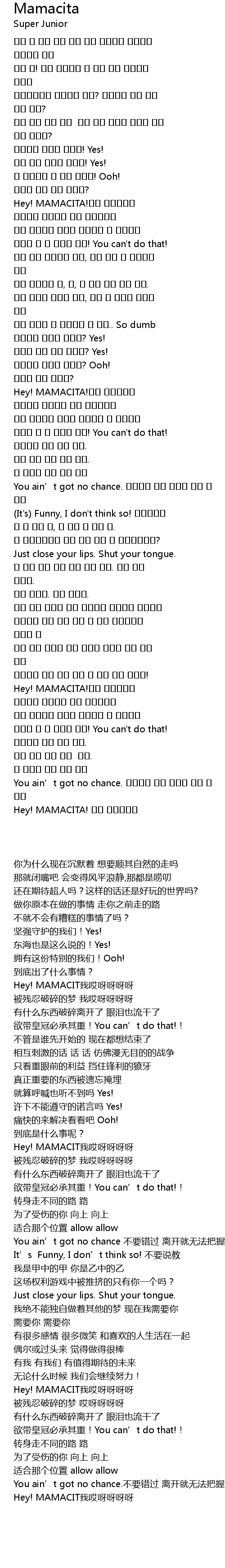 | [01:35.570] | Hey! MAMACITA!내가 아야야야야 |