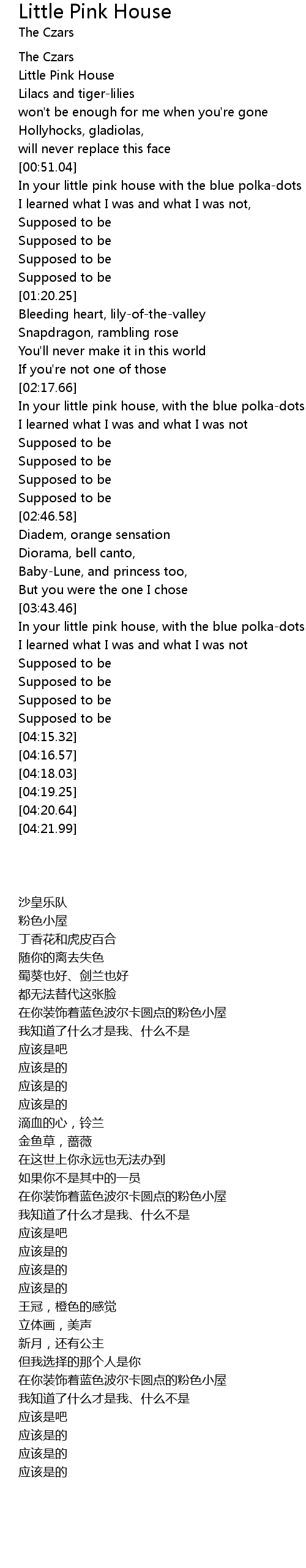 | [00:51.88] | In your little pink house with the blue polka-dots |