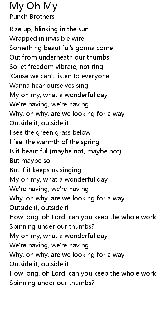 My oh my, what a wonderful day |