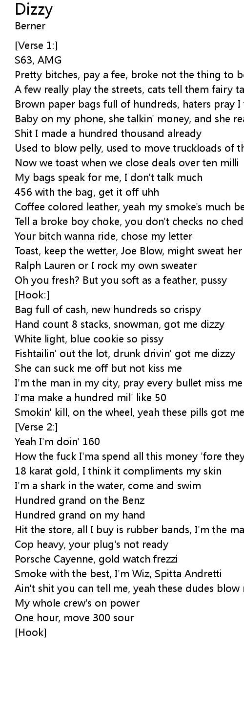 | Smokin' kill, on the wheel, yeah these pills got me dizzy | |