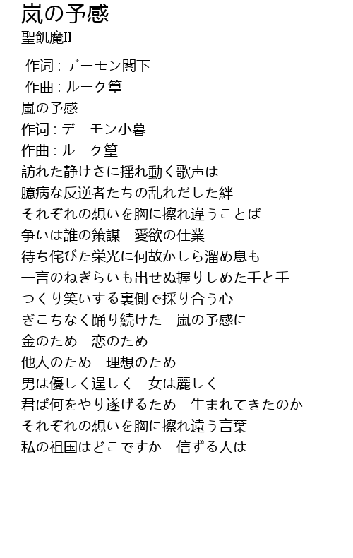 | [00:00.00] | 嵐の予感 |