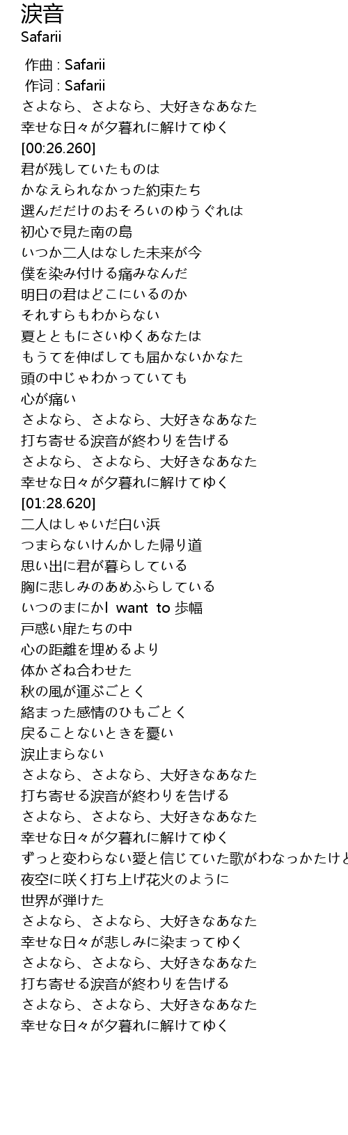 | [01:02.900] | さよなら、さよなら、大好きなあなた |