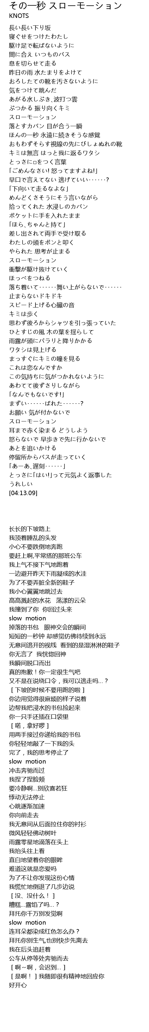 | [00:58.86] | ほんの一秒 永遠に続きそうな感覚 |