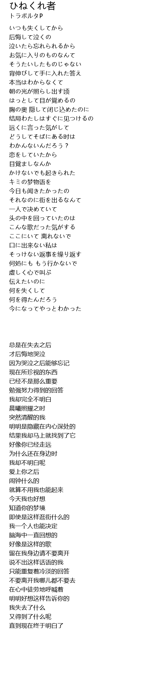 | [00:26.14] | 后悔して泣くの |