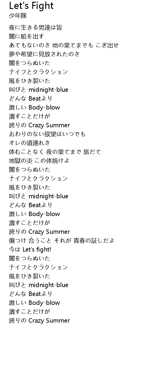 | [02:22.60] | 傷つけ 合うこと それが 青春の証しだよ |