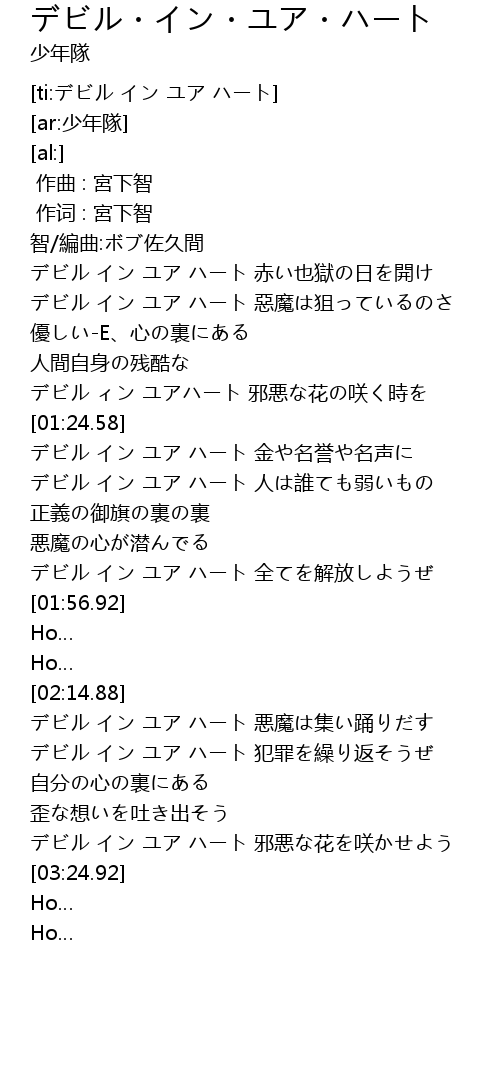 | [00:55.51] | デビル イン ユア ハート 赤い也獄の日を開け |