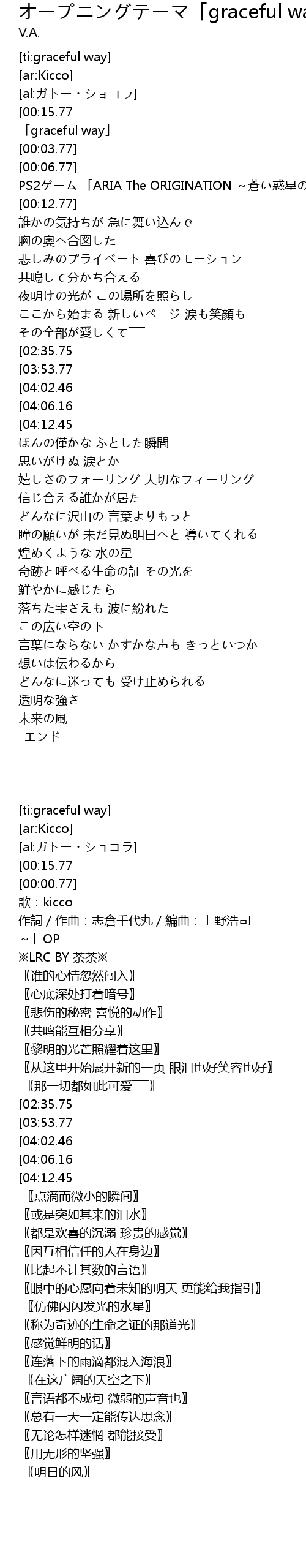 | [01:09.31][02:35.75][03:30.11] | graceful way |