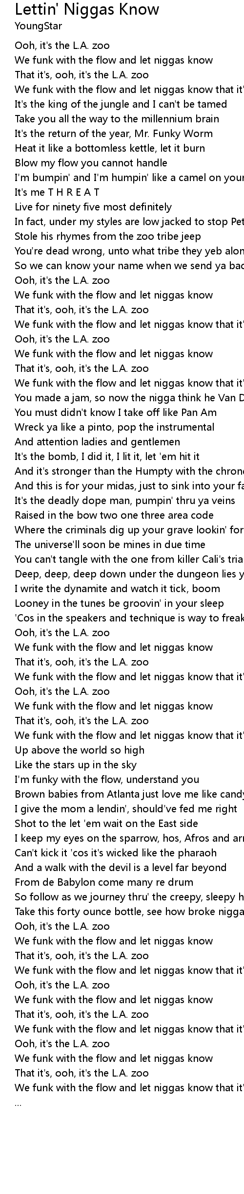 We funk with the flow and let niggas know that it's |