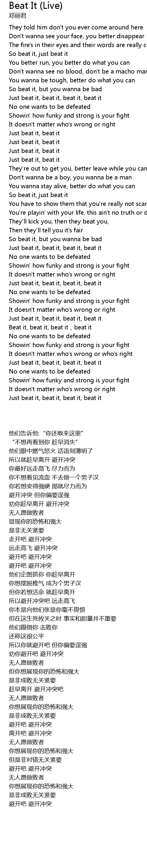 | [02:45.47] | Beat it, beat it, beat it, beat it |