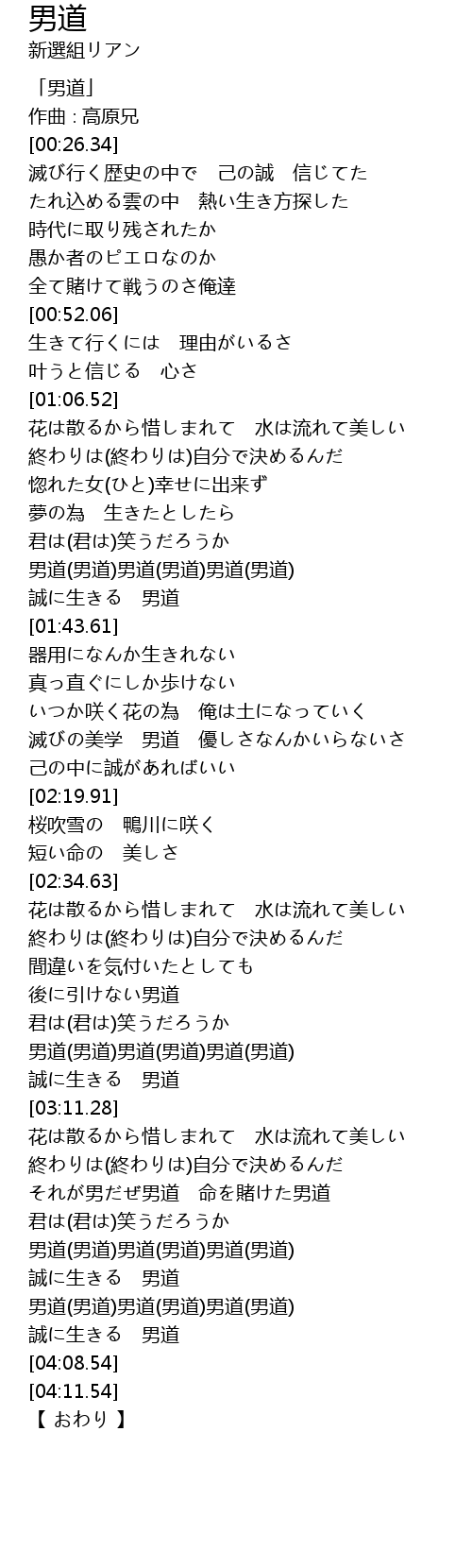 | [03:51.98] | 誠に生きる 男道 |