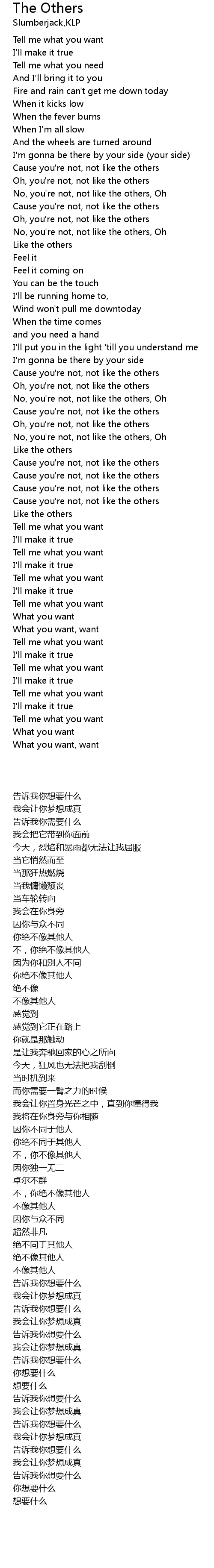 Cause you're not, not like the others |
