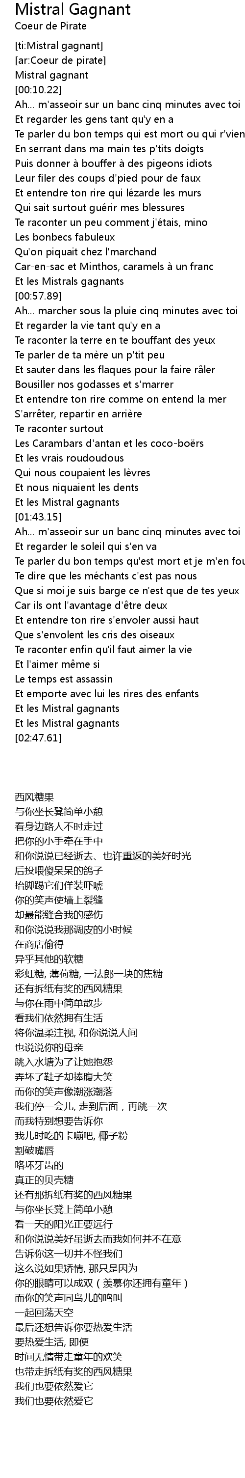 | [01:58.50] | Ah... m'asseoir sur un banc cinq minutes avec toi |