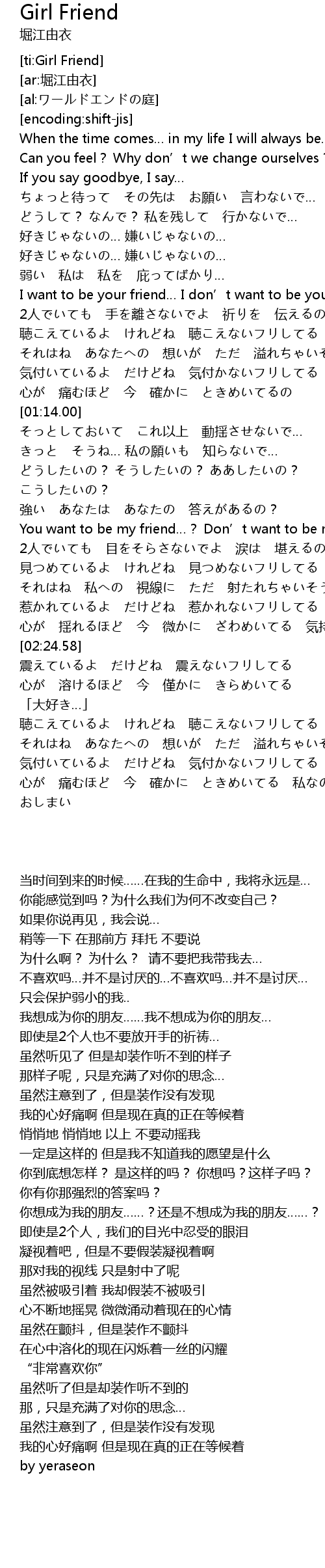 | [00:35.81] | I want to be your friend I don' t want to be your friend |