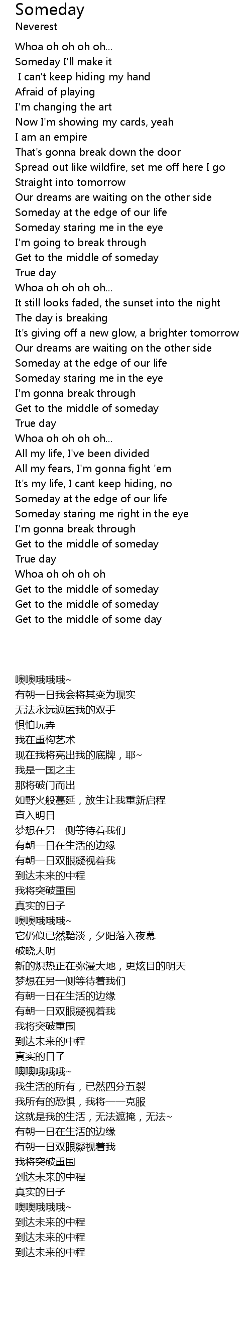 | [02:47:00] | Get to the middle of someday |