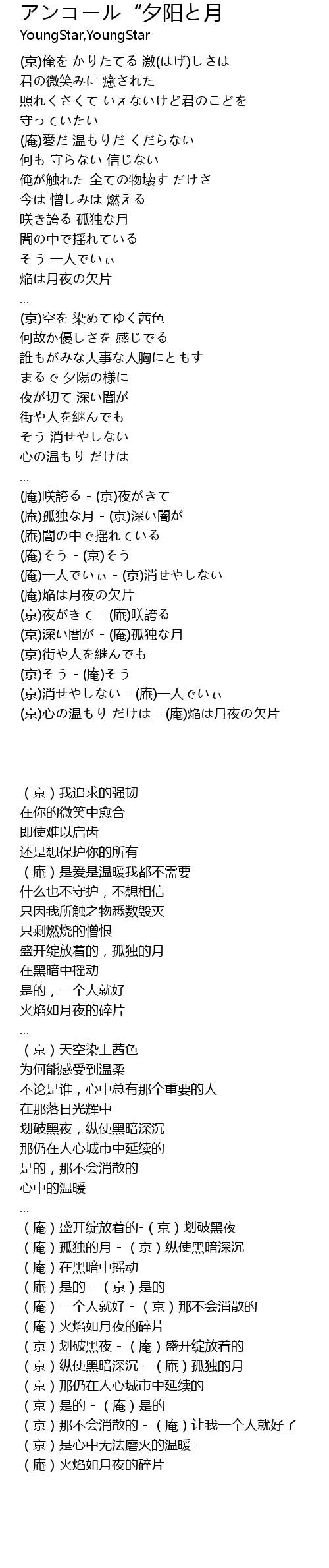 | [04:30.36] | (庵)孤独な月 - (京)深い闇が |