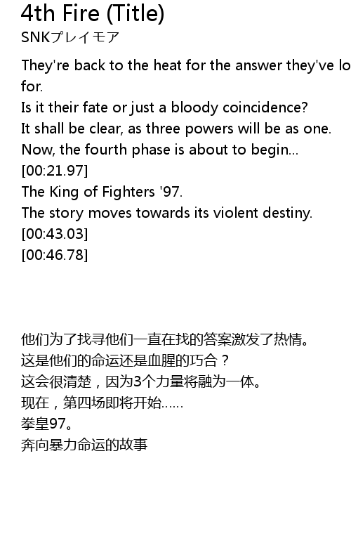 | [00:37.15] | The King of Fighters '97. |