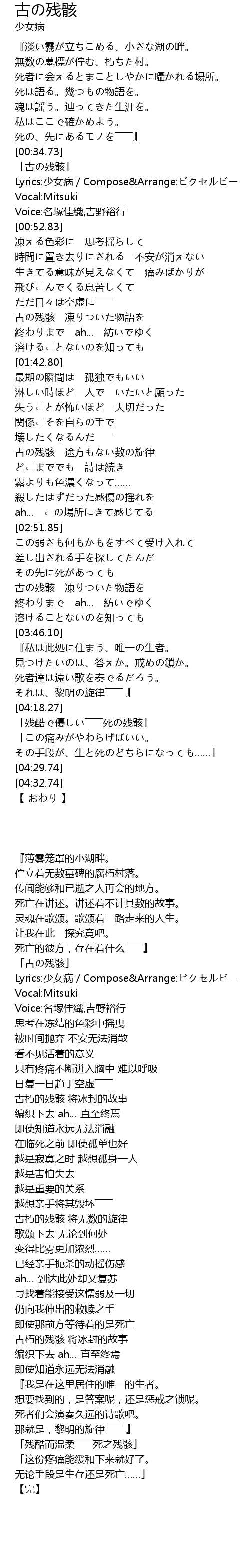 | [04:01.82] | 『私は此処に住まう、唯一の生者。 |