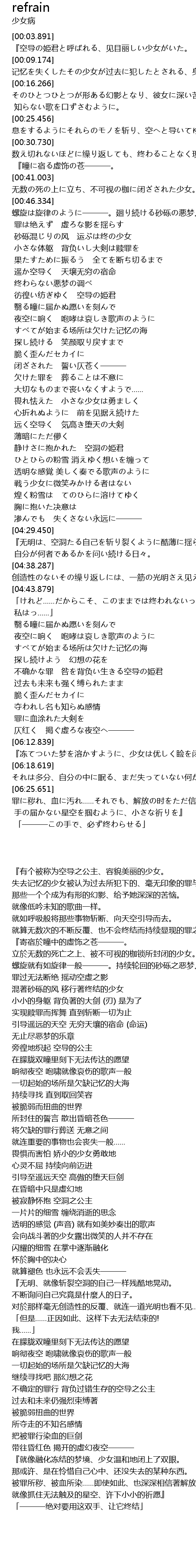 | [00:41.003] | 无数の死の上に立ち、不可视の枷に闭ざされた少女。 |