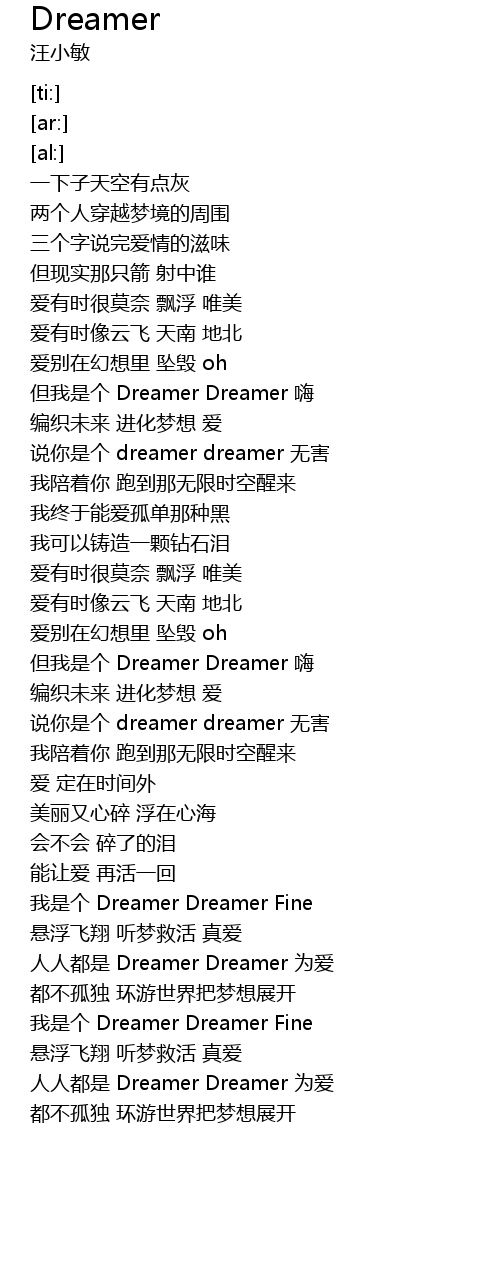 | [02:47.21] | wo shi ge Dreamer Dreamer Fine |