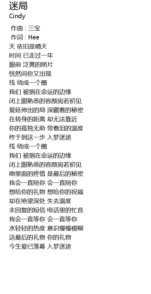 | [03:12.41] | 今生爱已落幕 入梦迷途 |
