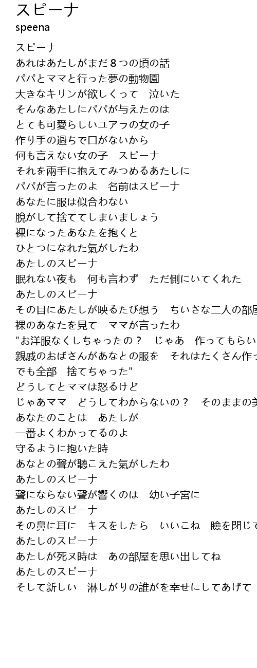 | [01:19.95] | パパが言ったのよ 名前はスピーナ |