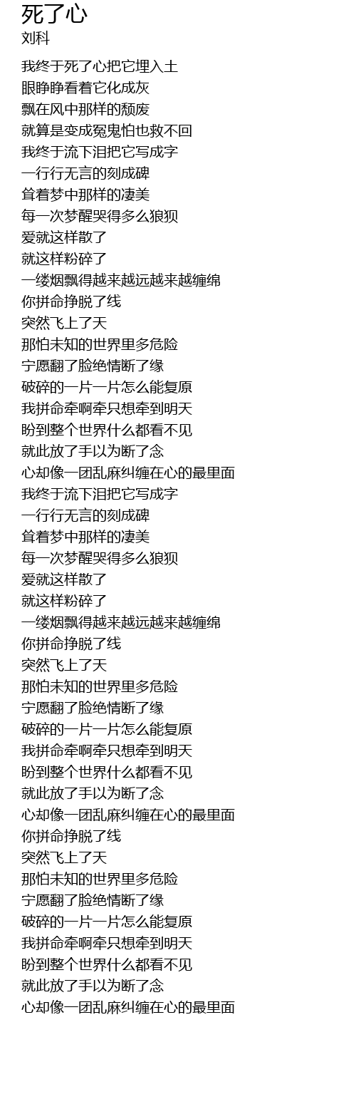 | [00:33.35] | wǒ zhōng yú sǐ le xīn bǎ tā mái rù tǔ |