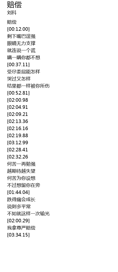 | [03:17.15][02:28.41][01:20.96] | 拿什么赔偿 |