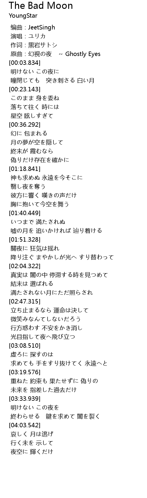 | [04:12.513] | 夜空に 輝くだけ |