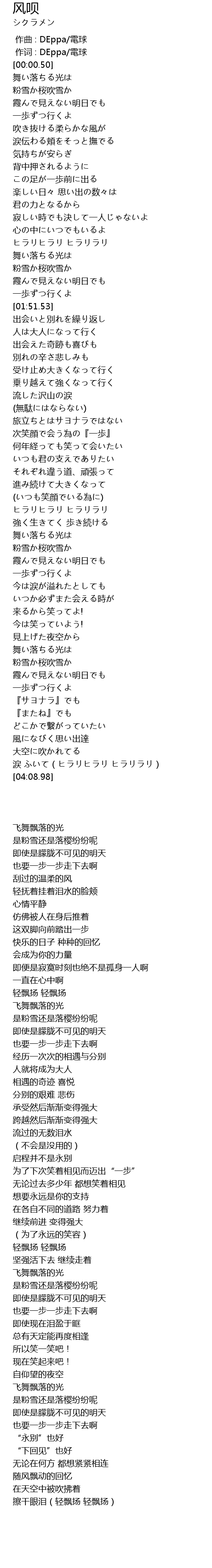 | [01:20.64] | ヒラリヒラリ ヒラリラリ |