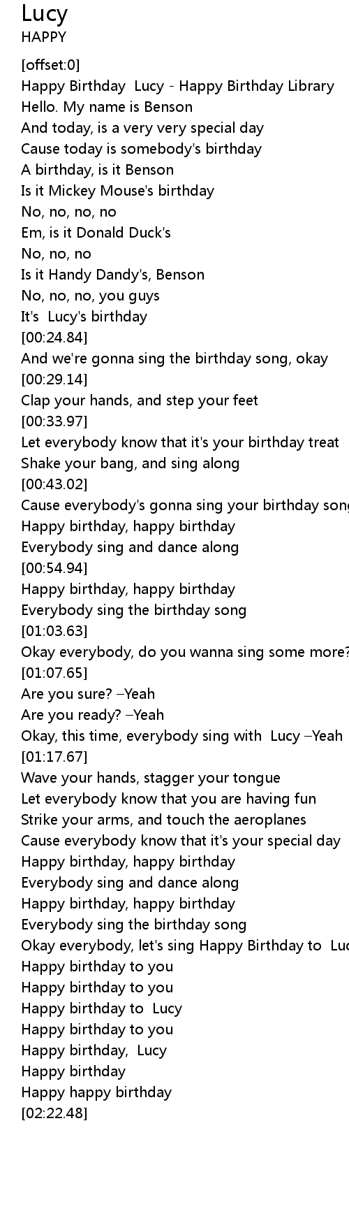 | [00:00.35] | Happy Birthday Lucy Happy Birthday Library |