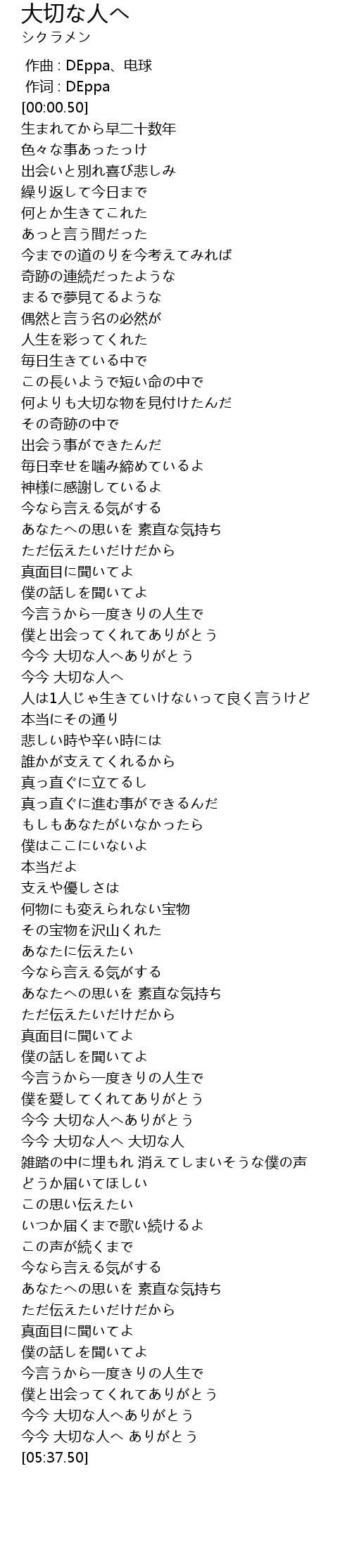 | [04:02.97] | 今今 大切な人へ 大切な人 |