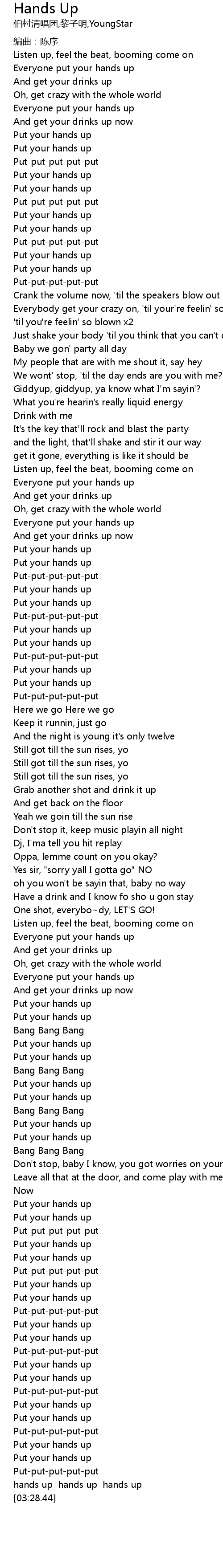 | [03:26.00] | hands up hands up hands up |