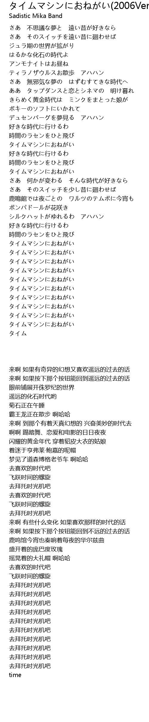 | [03:49.89] | タイムマシンにおねがい |