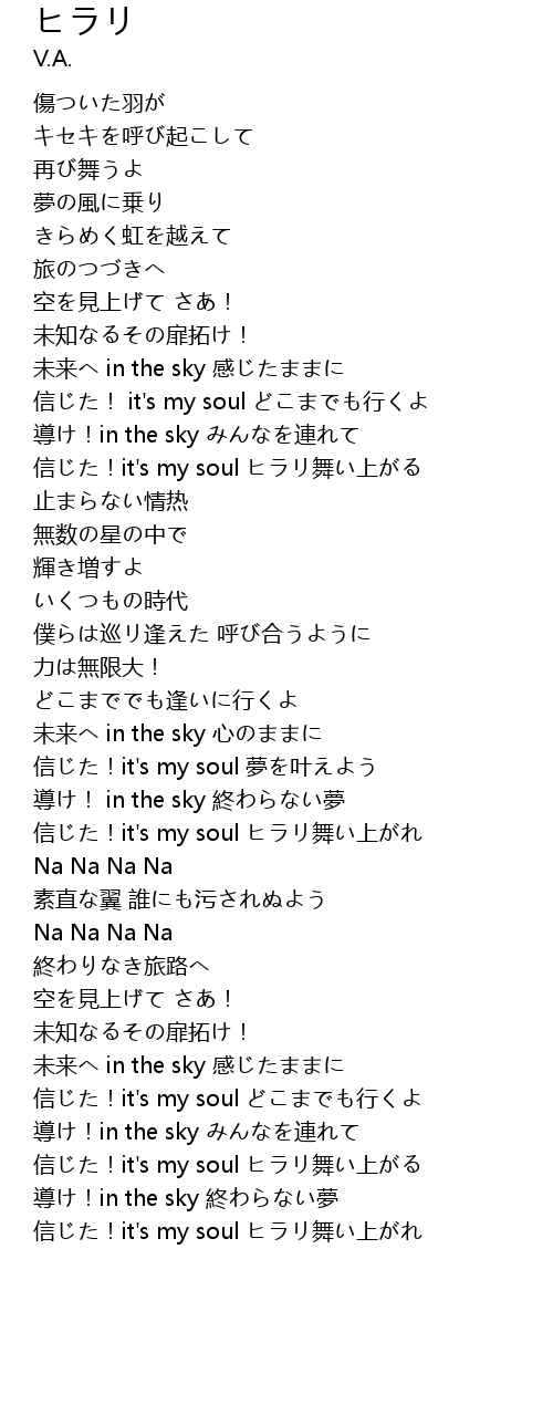 | [03:11.83] | 信じた!it's my soul ヒラリ舞い上がれ |