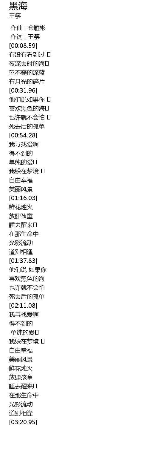 | [01:55.27] | 喜欢黑色的海 |