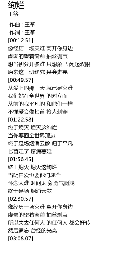| [01:58.39] | 终于熄灭 熄灭这绚烂 |