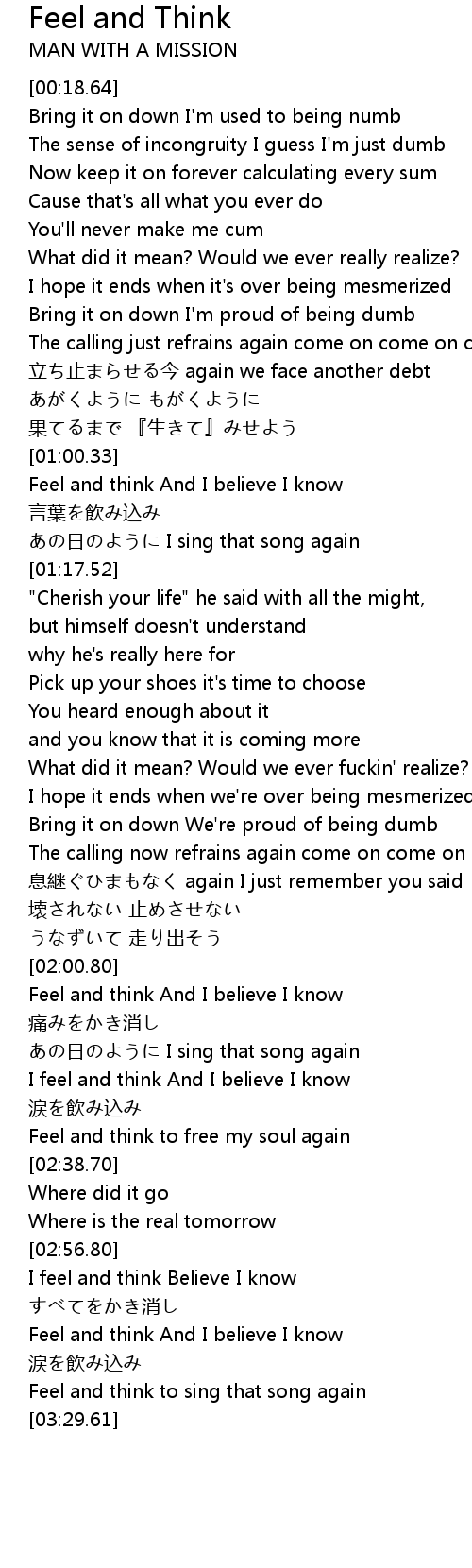 | [00:37.97] | The calling just refrains again come on come on come on |