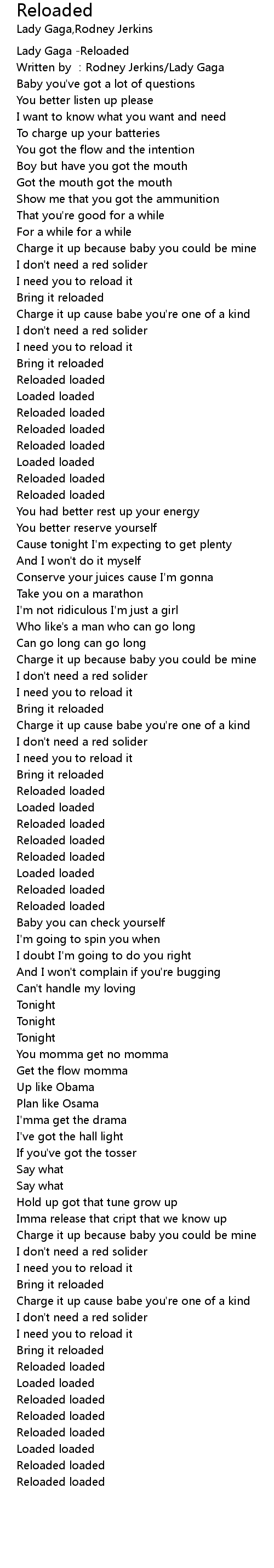 | [00:00.564] | Lady Gaga Reloaded |