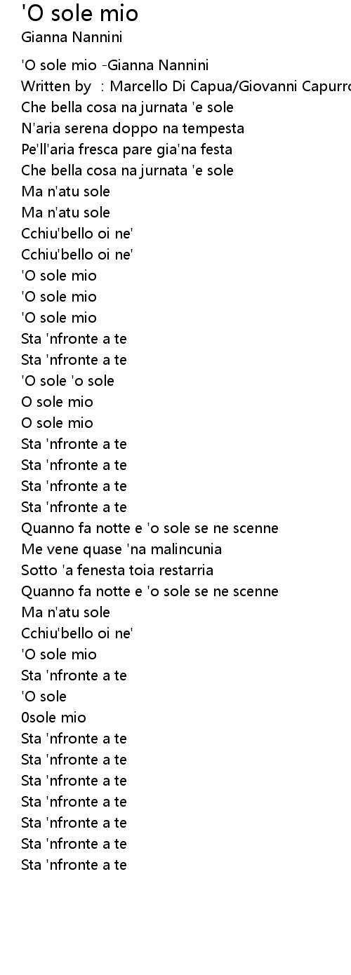 | [00:00.147] | ' O sole mio Gianna Nannini |