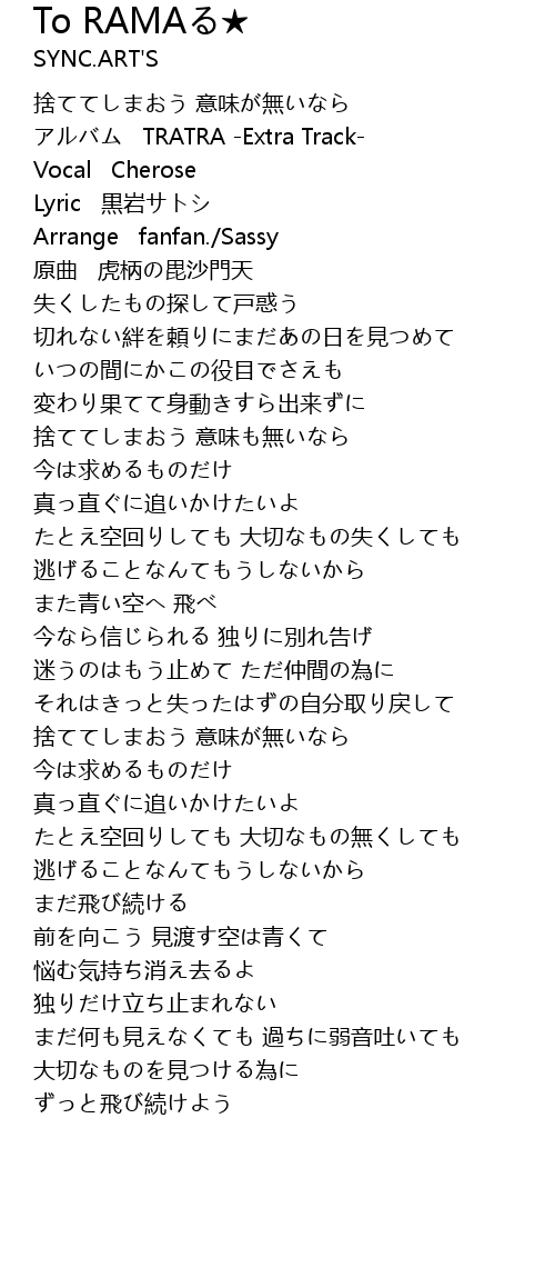| [00:16.72] | アルバム TRATRA -Extra Track- |