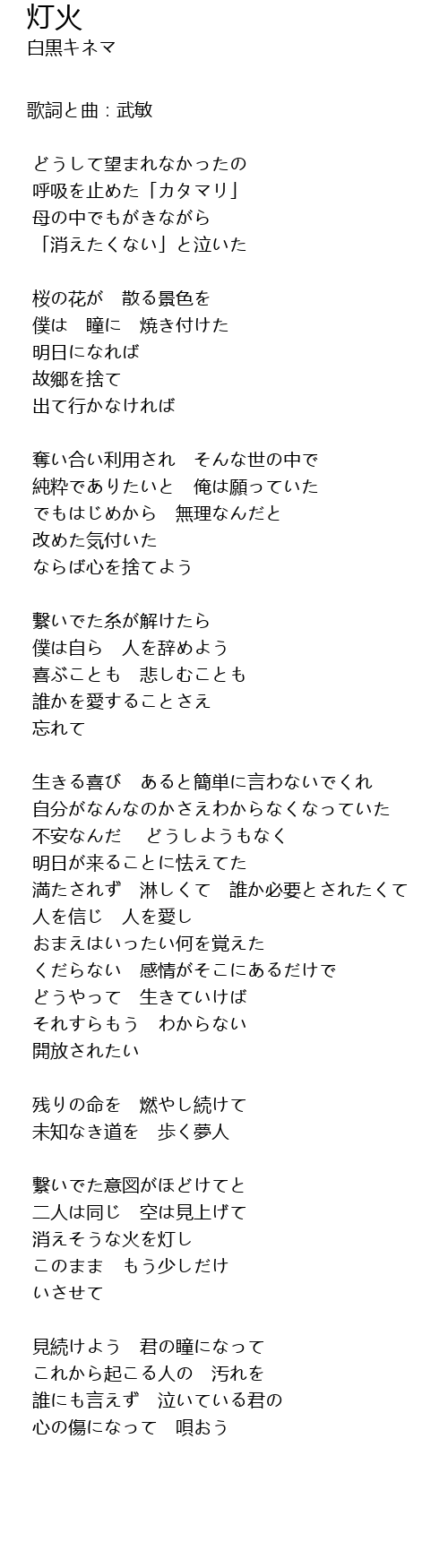 | [03:54.669] | 消えそうな火を灯し |