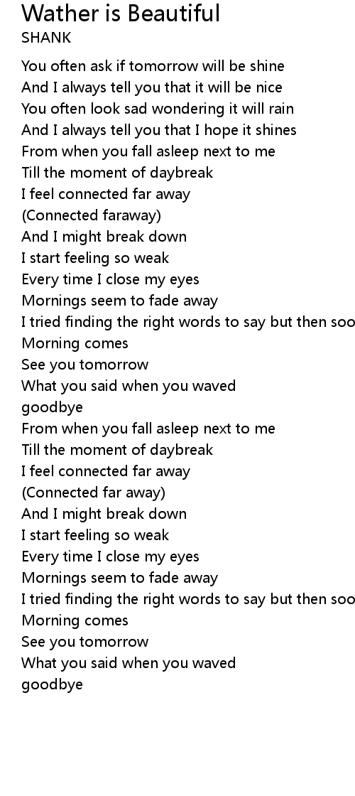 You often ask if tomorrow will be shine |